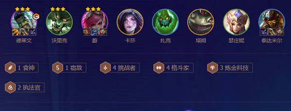 1:第二个阵容,德莱文,狼人,蔚,卡莎,扎克,塔姆,猪妹,蛮王;