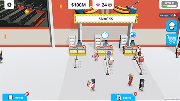 接待客人获取收益,高自由度,想办法升级电影院设施吸引越来越多的客人