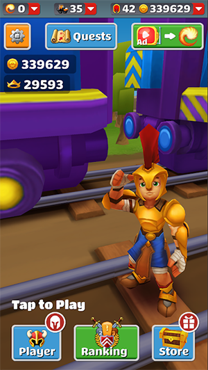 尽可能快地冲过火车轨道,收集硬币和道具