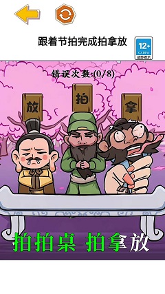 三国大挑战是一款休闲益智娱乐类游戏,众多有趣的挑战可以尝试,你能够在这里选择对应的选项,根据节奏的不同来选择拍拿放,还有不同的游戏玩法可以在这里尝试,来到三国大挑战中尝试。