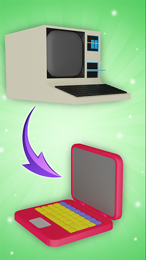 一款模拟计算机和笔记本电脑进化演变的街机动作游戏,操控你的笔记本电脑一路向前,选择正确的门来进化你的电脑