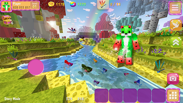进入一个梦幻般的糖果世界中,探索不同主题地点,发现更多有趣冒险故事,使用颜色多样的方块来构建属于你的世界