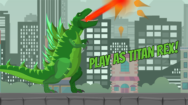 混合泰坦霸王龙城市横冲直撞Hybrid Titan Rex City Rampage是一款城市破坏模拟游戏,霸王龙被倾倒入海的放射性废物唤醒,变得如泰坦般巨大,操控泰坦霸王龙破坏城市,摧毁城市中的一切,迎战人类的士兵、卡车、坦克和直升机。