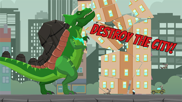 操纵自己的恐龙快速的摧毁城市中的建筑物,开启战斗技能