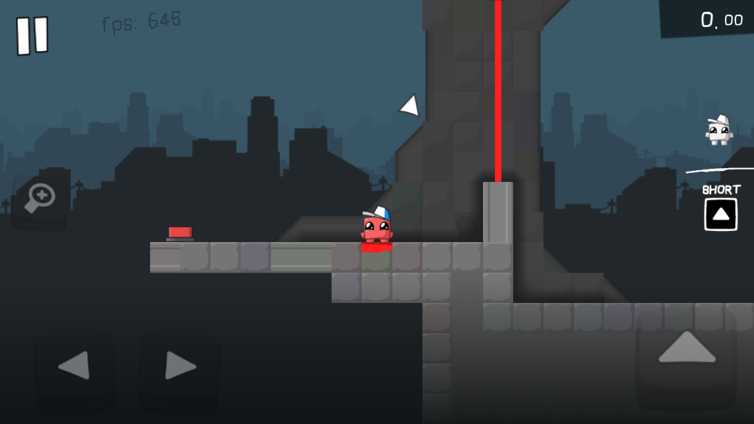 操作类似肉肉哥一样的角色进行闯关,通过虚拟按键控制角色左右移动和跳跃,躲避场景中的一些障碍物和陷阱,击败怪物来完成挑战