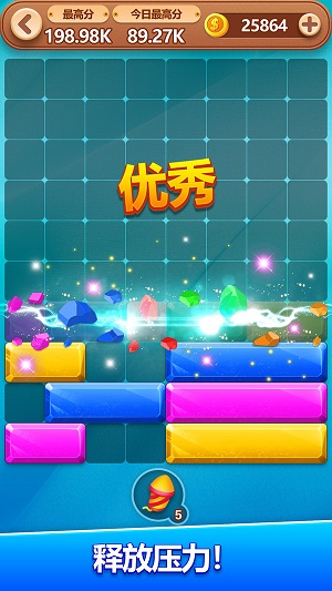 疯狂消方块是一款休闲益智方块消除游戏,不断对方块进行消除,你能够在这里控制不同方块的下落,将一行方块填补完整,成功消除掉所有方块,你能够来到疯狂消方块的游戏中,不断开始闯关。