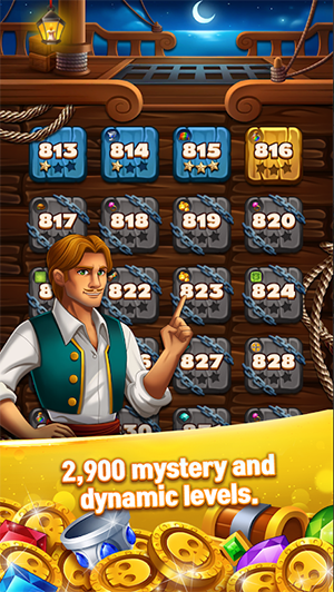 幻想消消乐JewelsFantasyPirate是一款珠宝益智三消游戏,提供充满乐趣的游戏体验。游戏内有着多达2900多个关卡等待玩家挑战,滑动来匹配3个或以上数量相同珠宝来完成消除,使用强大的增强道具,轻松道路的重重障碍。