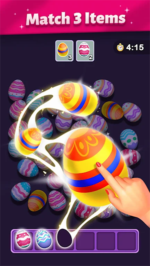 3D版匹配三消游戏,点击来匹配相同的图块,在托盘数量堆满前完成消除挑战,体验趣味三消玩法