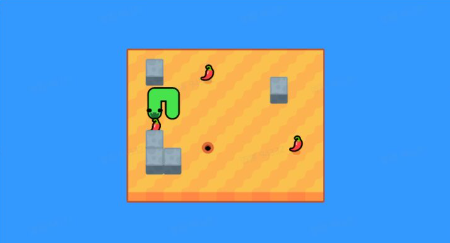方块贪吃蛇是一款横版趣味闯关游戏,通过上下左右操作来控制方块蛇,吃掉所有食物,玩家需要灵活的运用图中的辣椒,香蕉,冰块等物品来过关。