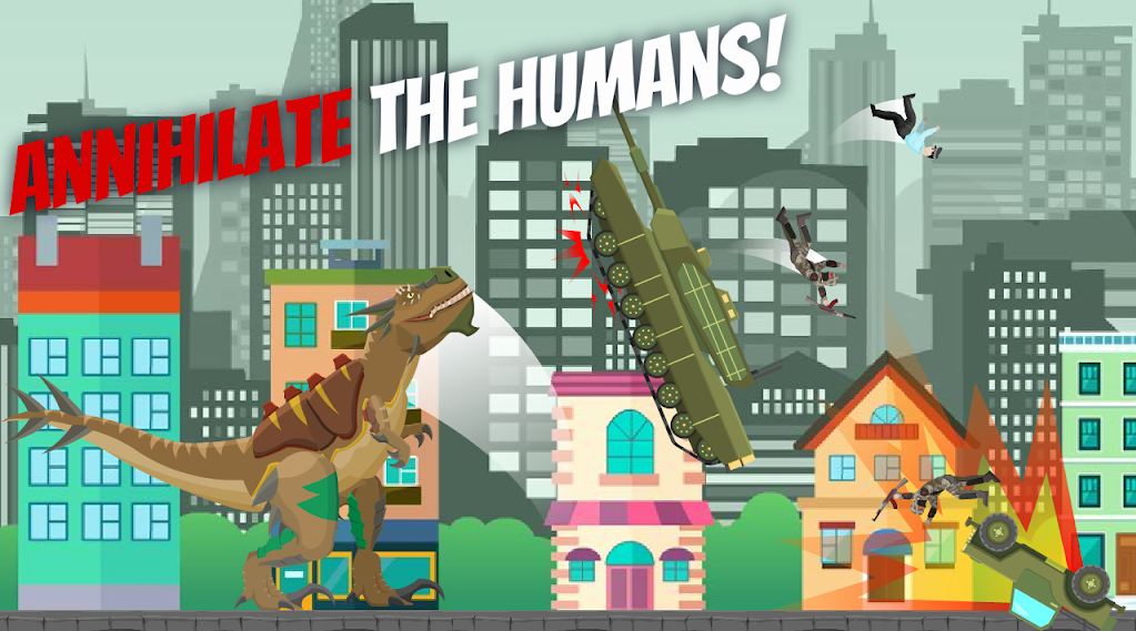 化身成为混合霸王龙,在城市进行破坏,深入城市的更深处,消灭所有人类,体验破坏的乐趣