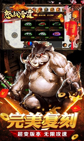 怒战雷霆是一款传奇超变复古类游戏,复古的传奇体验,你能够在这里看到熟悉的战法道三职业,还有各种经典的BOSS绿名,你能够击杀BOSS,收获稀有的装备,快来怒战雷霆的游戏中尝试。