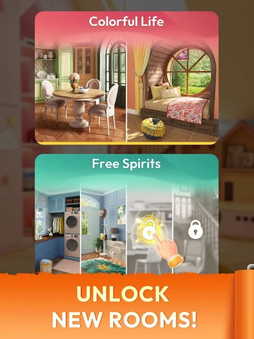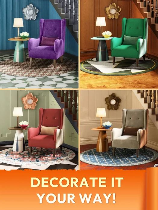 Decor Match有不同的房间,如卧室、客厅和厨房。如何处理它们取决于您。
